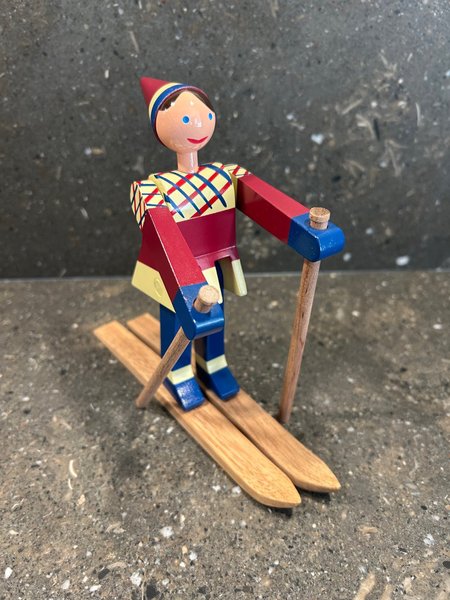 Detta är träfiguren "Skidåkare Datti" designad av Kay Bojesen.