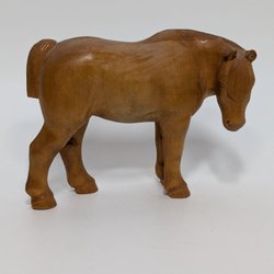 En söt liten blå trähäst med blommönster. Hm. Observera att det finns en liten skada på ett ställe, se bild 5.