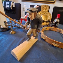 En unik och handgjord träfigur föreställande Oden. Figuren har en detaljerad utformning och en karaktäristisk stil. Perfekt för samlare eller som en dekorativ detalj i hemmet. Konstnär: Daudr Art