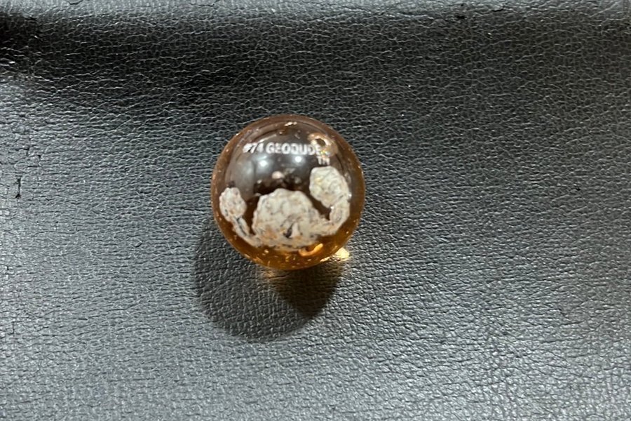 En marmorkula med nummer 74 Geodude.