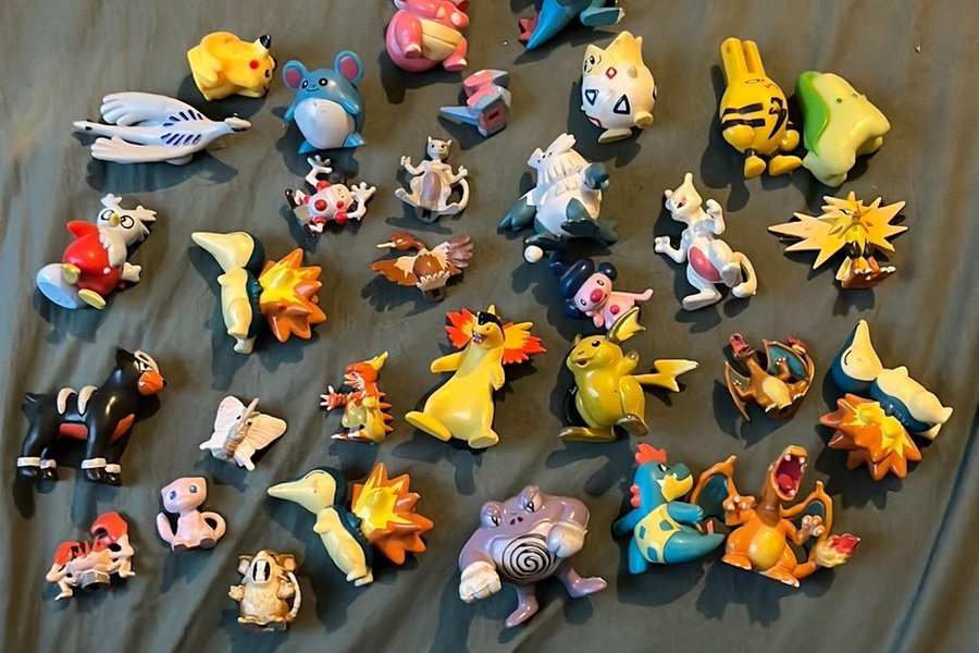 Samling av äldre Pokemon figurer. Perfekt för samlaren eller Pokemon-entusiasten