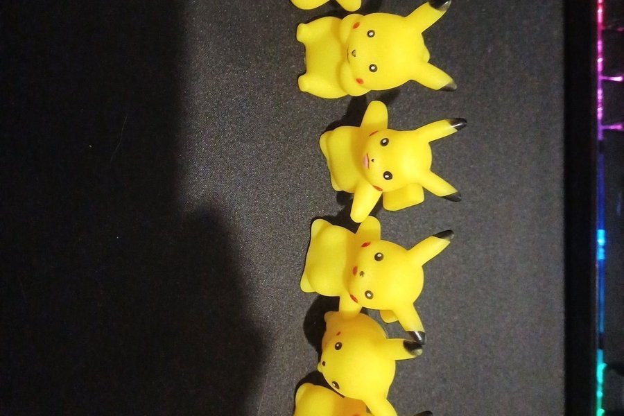 Set med fem Pikachu figurer.