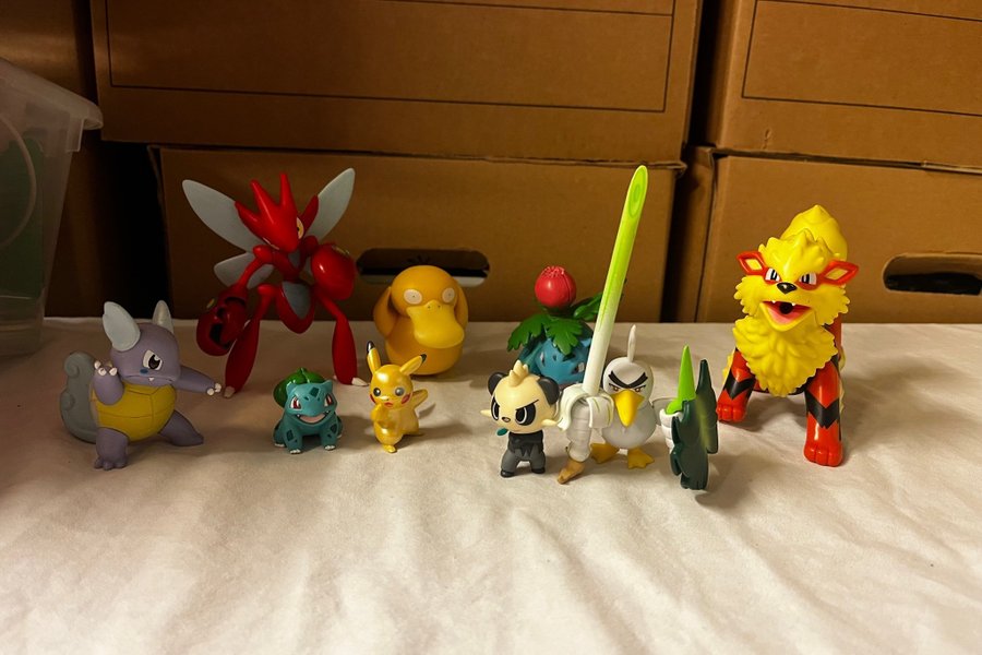 Detta är en samling Pokémon figurer. I samlingen ingår Scizor, Psyduck, Bulbasaur, Pikachu limited golden edition , Pancham, Farfetch'd, Arcanine och en warturtle. Se bild för skick :)
