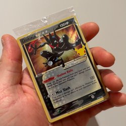 Her er et udvalg af Pokémon samlerobjekter. Inkluderer en Pikachu 25 års jubilæums token fra 2000, samt en Arbok og en Kangaskhan token.