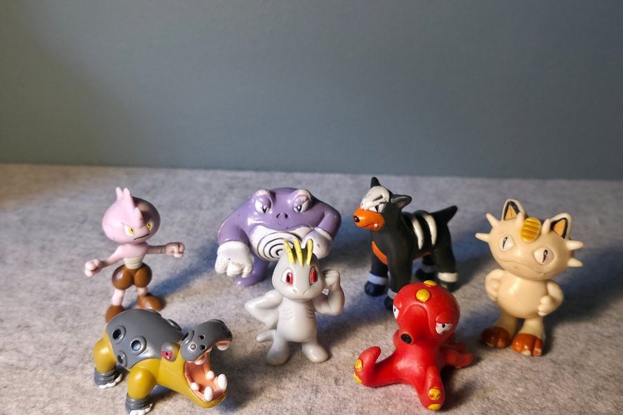 Detta är en samling med 7 Pokémon figurer. I samlingen ingår Poliwrath, Machop, Houndour, Meowth och Octillery. Varierande skick.