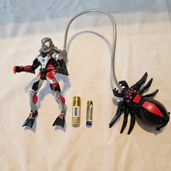 Säljer en Spiderman actionfigur tillsammans med en tillhörande leksaksfälla och en spindel. Batterier i bilderna är med enbart för storleksuppfattning.