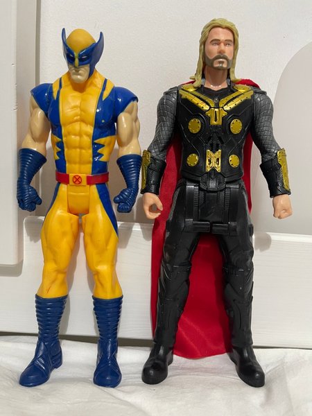 Två actionfigurer föreställande Marvels Thor och Wolverine. Perfekt för samlare eller barn. 30cm
