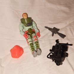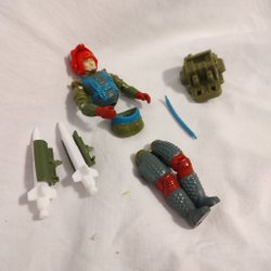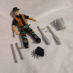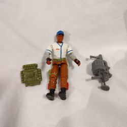 Actionfigur med verktyg och tillbehör.