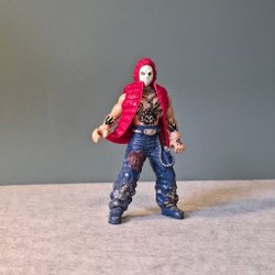 Morbius Actionfigur från Marvel Toy Biz Inc. från 1995. Figuren har en avtagbar svart kappa och 2 ansikten som skiftar/snurrar när man trycker ihop benen. Ett huvud har ett vitt ansikte med röda ögon och det andra huvudet har ett hudfärgat ansikte med svarta ögon. Figuren är klädd i en röd skjorta, blå byxor och svarta stövlar.