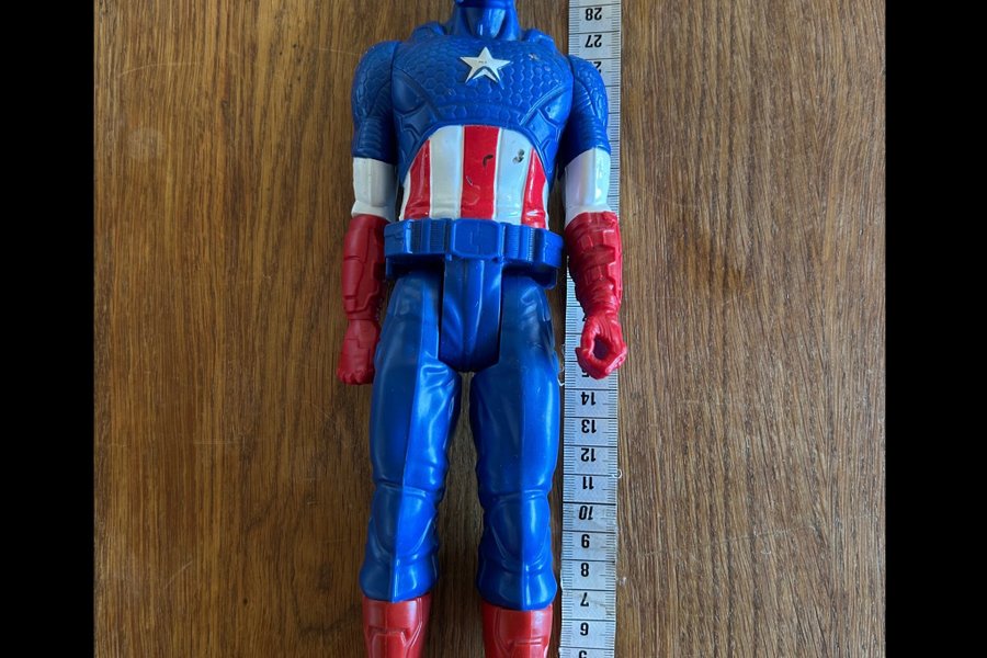 Captain America actionfigur i blått, rött och vitt. Figuren är ca 30 cm lång.