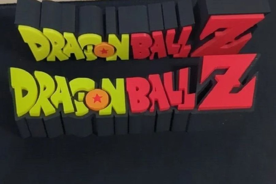 Dragon Ball Z-logotyp i 3D-design. Logotypen är utformad med "Dragon Ball" i gult och "Z" i rött, med en orange detalj i mitten av "Dragon Ball"-texten. Den har en svart bas. 1st 23cm