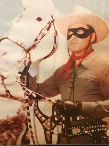 Färgfoto i riktigt fotopapper av ”The lone ranger ”- Clayton Moore. Storlek 50x40 cm. Skickas rullad i tub.
