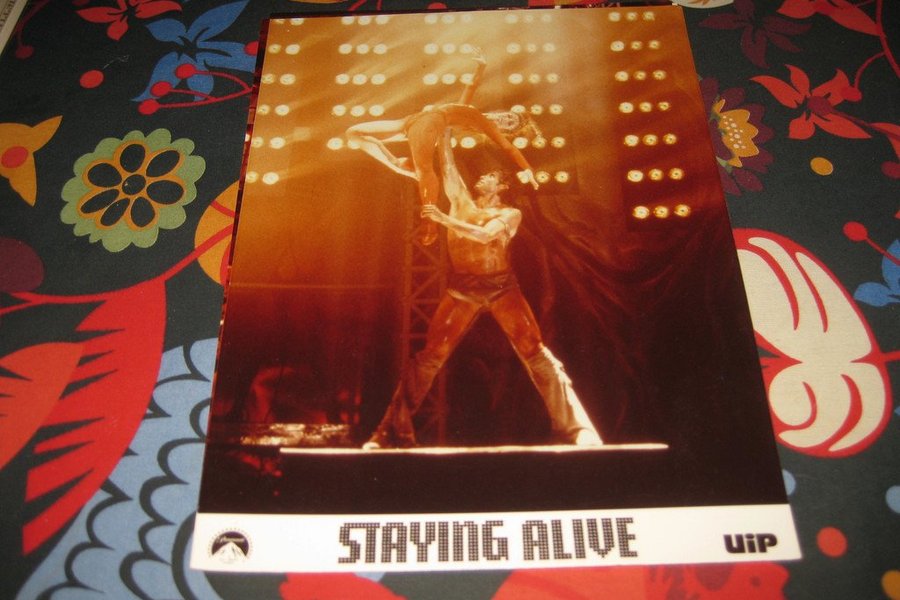 Lobbykort fr " Staying alive " i perfekt begagnat skick.