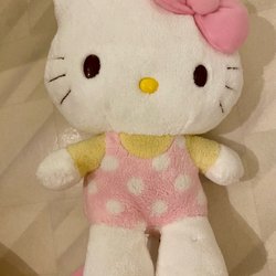 Hello Kitty gosedjur ca 18cm i ljusgrön prickig klänning och rosett. I mycket fint skick, bara stått som dekoration på en hylla.