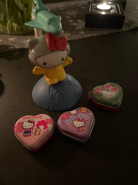 Hello Kitty figurer och plåtaskar