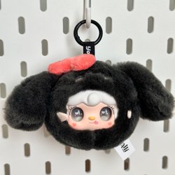 Hello Kitty figur i vitt och rosa med prickigt mönster. Figuren har en rosa rosett på huvudet.