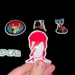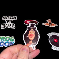 - Musikrelaterade klistermärken, allt från klassisk rock till modern pop.