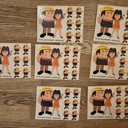 Klistermärken, mest bokstäver och stjärnor lite annat också några som rivits ut från andra pysselböcker