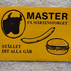 Klistermärke med reklam för Master på Mårtenstorget i Lund.