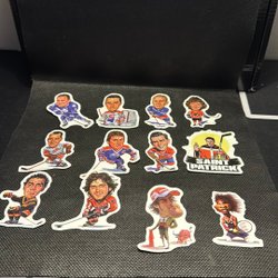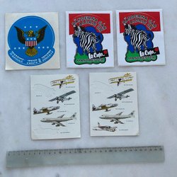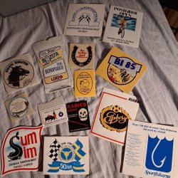 Två klistermärken. Ett med texten "100 klubben olympisk sponsor BP 025". Ett med texten "Mera guld 80 Lake Placid Moskva".