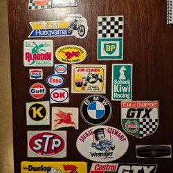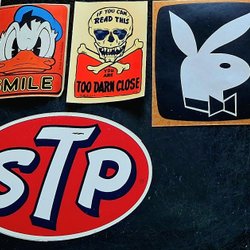 Två dekaler med tryck. En dekal visar "Jag stöder Bollklubben Zeros Motala 1932". Den andra dekalen visar "Z-Parkens Camping Varamobaden Zeros 1932".