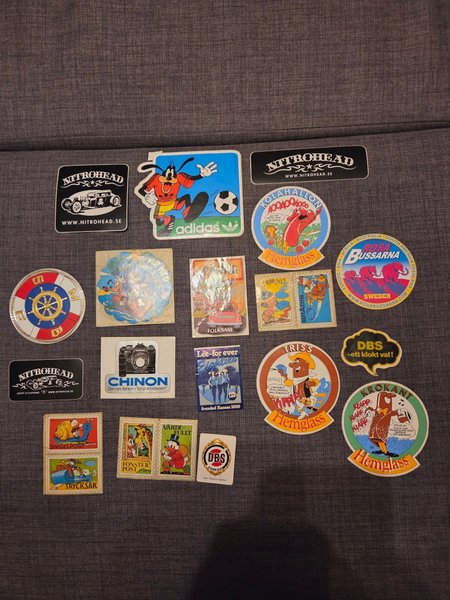 Klistermärken. 21 stycken.