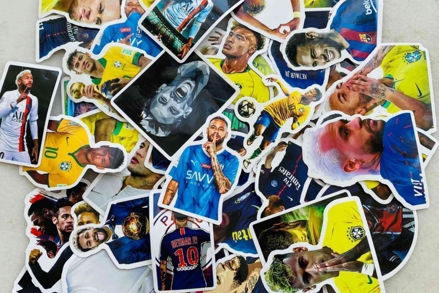Ett gäng klistermärken med motiv av fotbollsspelaren Neymar. Perfekt för att dekorera dina saker med dina favoritspelare. Ca 50st.