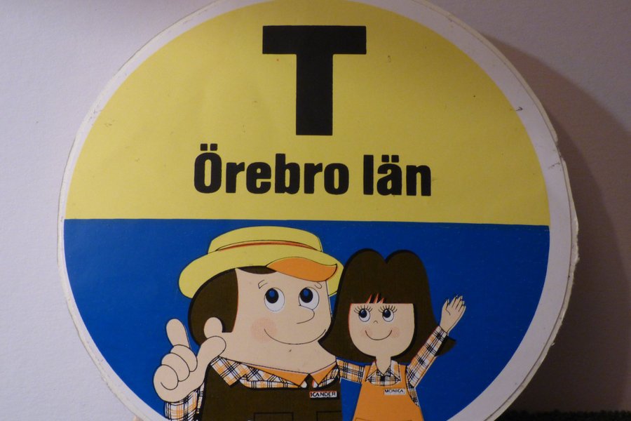 En reto dekal med T Örebro län och reklam för Team ICA 12 cm i diameter Postas med frimärken Post Nord