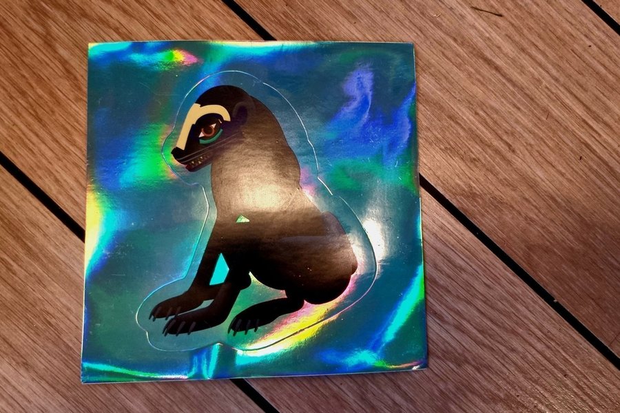 Ett klistermärke med ett djurmotiv. Klistermärket har en fanastisk skimrande bakgrund som blänker i olika nyanser i ljuset. Kan sändas spårbart, eller med vanliga frimärken. Välj det fraktsätt ni önskar.