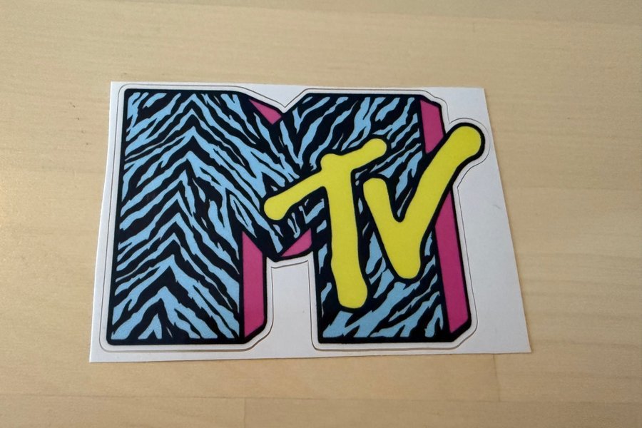 Ett klistermärke med MTV-logotypen. Perfekt för samlare eller som dekoration. Storlek ca 8cm, Samfraktar gärna flera objekt.