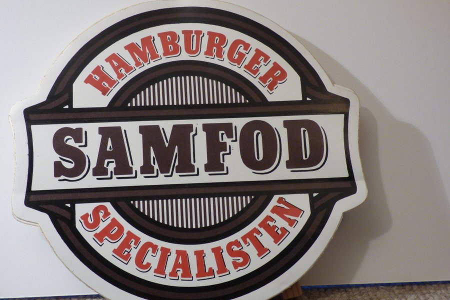 En kult dekal med reklam för SAMFOOD Hamburger Specialisten 15 X 14 CM