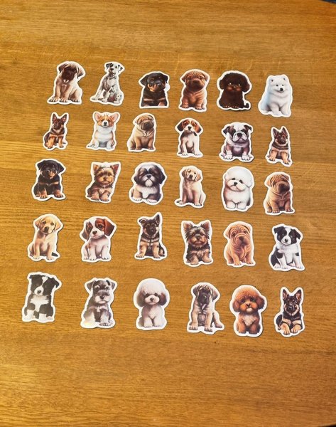 30st klistermärken med hund motiv. Cirka 6cm - 8cm. Perfekt till pyssel, scrapbooking, att dekorera och annat.
