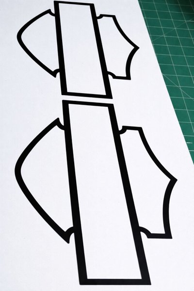 En appliceringsfolie är lagd över dekalerna för att förenkla montering.