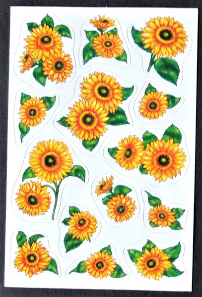 Stickers: Solrosor med lite glitter på bilderna. Mått: 8 cm x 12 cm. Mycket fint skick, ny. Samfraktar. Om fler köp kontakta mig för rätt porto.