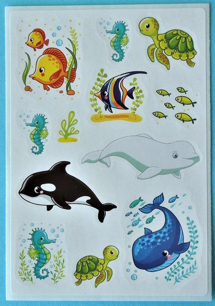 Stickers: Olika havsdjur. Mått: 8 cm x 12 cm. Mycket fint skick, ny. Samfraktar. Om fler köp kontakta mig för rätt porto.