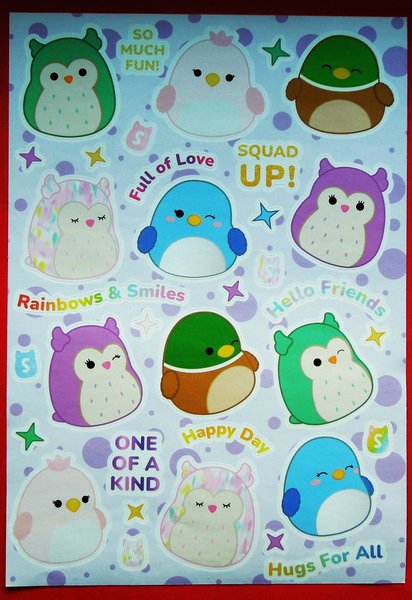 Stickers: Många Squishmallows. Mått: 14,5 cm x 20 cm. Mycket fint skick, ny. Samfraktar. Om fler köp kontakta mig för rätt porto.