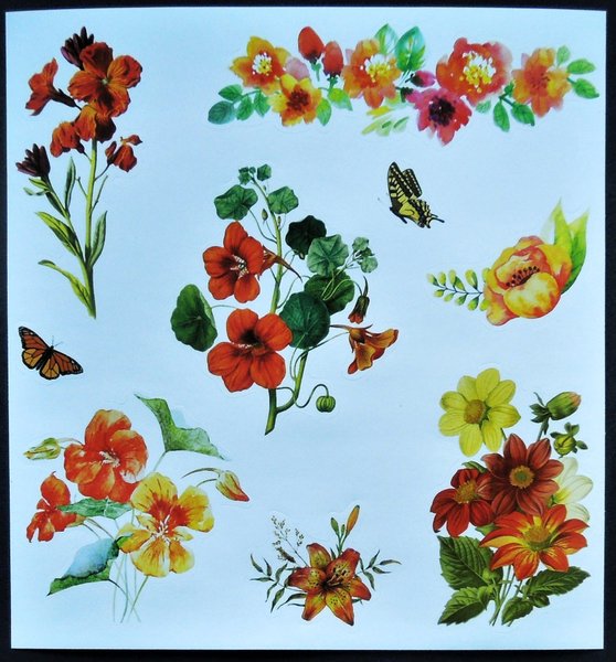 Stickers: Blommor, två fjärilar. Mått: 15 cm x 17 cm. Mycket fint skick, ny. Samfraktar. Om fler köp kontakta mig för rätt porto.