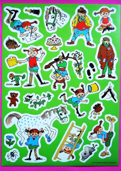 Stickers: Pippi Långstrump, Herr Nilsson mm. Mått: 14 cm x 20 cm. Mycket fint skick, ny. Samfraktar. Om fler köp kontakta mig för rätt porto.