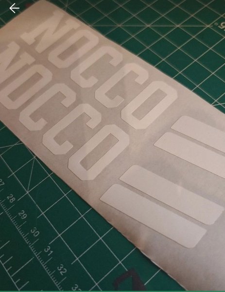 En appliceringsfolie är lagd över dekalerna för att förenkla montering.