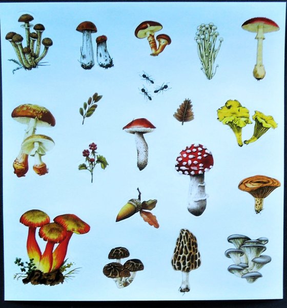 Stickers: Svampar. Mått: 15 cm x 17 cm. Mycket fint skick, ny. Samfraktar. Om fler köp kontakta mig för rätt porto.