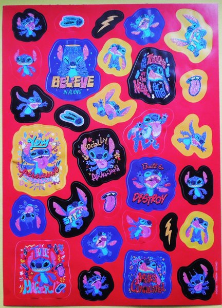 Stickers: Stitch med glitter på bilderna. Mått: 15 cm x 20 cm. Mycket fint skick, ny. Samfraktar. Om fler köp kontakta mig för rätt porto.