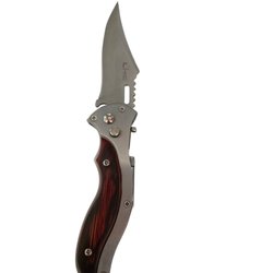 En fällkniv med trähandtag och bild på bladet. Kniven kommer i originalförpackning. På clipset står det CHONGMING CT97.