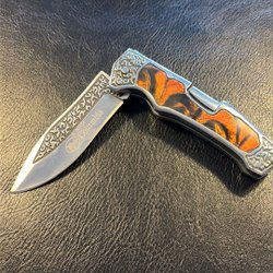 Två fickknivar med fällbara blad. En i svart och en i stål . Perfekt för samlaren eller friluftsentusiasten.