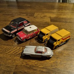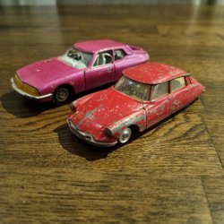 Begagnade Corgi bilar i olika skick