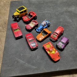 Begagnade Corgi bilar i olika skick