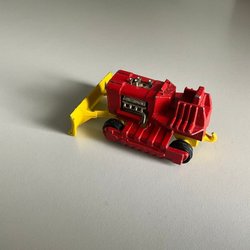 En leksaksbil av märket Corgi Cubs. Bilen är vit och röd med röd inredning. Hjulen rullar men kanske något hjul rullar lite trögt