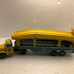 Kommentar: Klassisk breakdown truck från Matchbox, med BP-tema. Kranarmen är rörlig och har krok. Observera att reklamskylten som normalt sitter på taket saknas (se exempelbild). Detta påverkar samlarvärdet. Se bilder för skick.