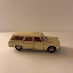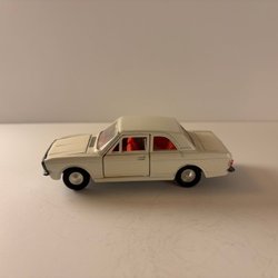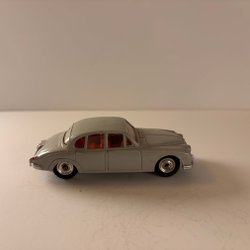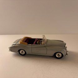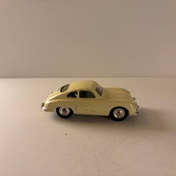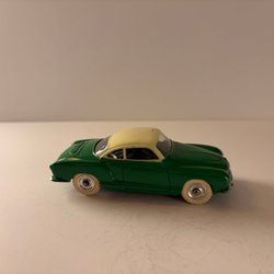Leksaksbil föreställande en Jaguar E-Type från Tekno Danmark. Bilen är vit med svart tak och röd interiör. Motorhuv och bagagelucka kan öppnas.