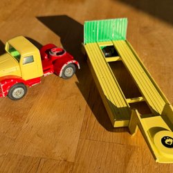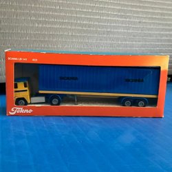 Trailer i blått och vitt. Modellen har tre axlar och detaljerade dörrar baktill.