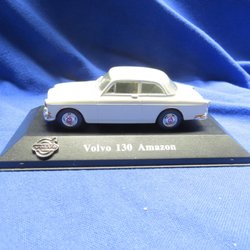 Modell av en Volvo 130 Amazon. Denna modellbil kommer på en displaybas med texten ”Volvo 130 Amazon” och Volvo logotypen.